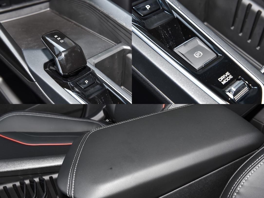 扶手臺以儲物為主,保留小面積實體按鍵區,左側的電子擋桿小巧光滑,占用空間較少,后方有駕駛模式撥桿,提供運動、經濟、舒適等模式。儲物空間豐富,前方手機儲物格較為開闊,可放置兩部手機;右側的儲物槽利用3個插片在10道插槽中,實現空間的多變。