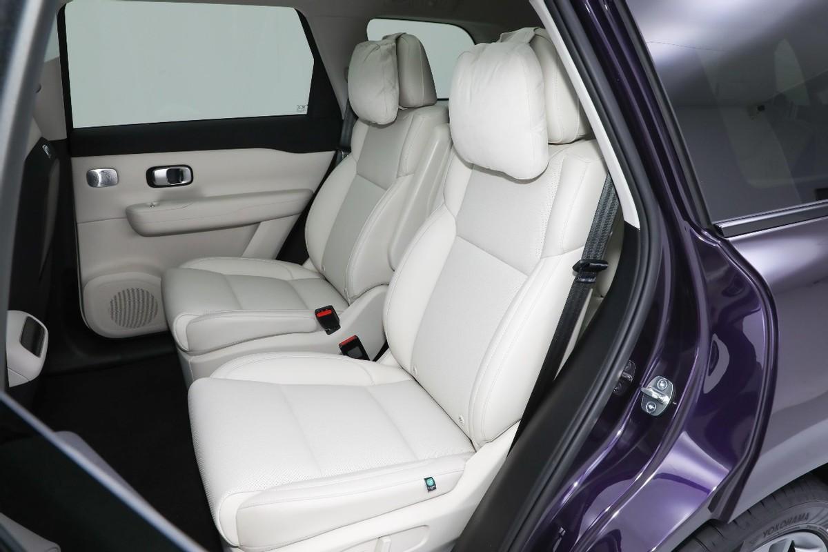 內(nèi)部座椅的布局是2+2+2,第二排跟MPV一樣是兩個獨(dú)立座椅,除具備前后以及靠背的大角度調(diào)節(jié)之外,還配備了加熱和通風(fēng)功能,包括前排座椅后邊的小桌板也沒有落下,功能上在向MPV看齊。
