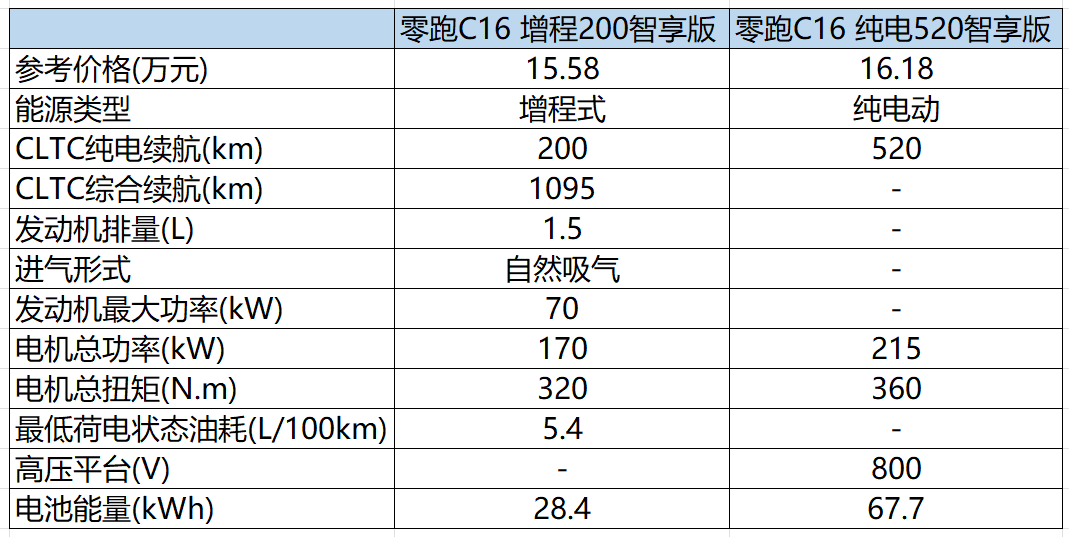 那么增程和純電如何來選呢?首先零跑C16純電版全系CLTC續(xù)航都是520km并不算長,盡管標(biāo)配了800V快充,但如果是冬天寒冷地區(qū)還需要考慮續(xù)航打折的問題,充電焦慮恐怕并不能完全打消,相對來說,增程版可油可電,日常通勤200km純電續(xù)航也夠用,長途旅行綜合續(xù)航也能達(dá)到1095km,不會有用車方面的焦慮,所以筆者更推薦增程版本。