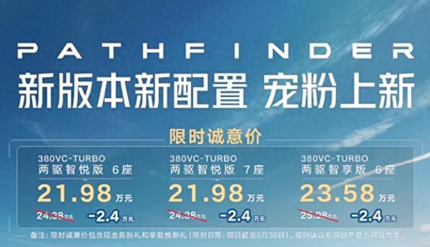 6月11日,東風日產旗艦SUV探陸迎來了3款兩驅6座車型和1款兩驅7座車型上市,限時誠意價為21.98-23.58萬元。