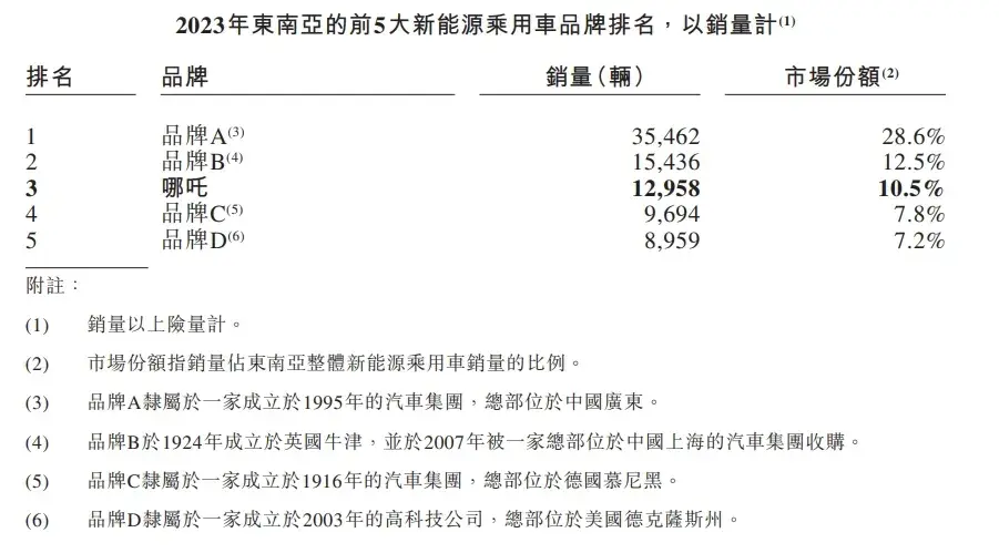 2023年,哪吒汽車實(shí)現(xiàn)了出口17019輛車的成績(jī),占全年總銷量的13.7%,貢獻(xiàn)了12.0%的銷售收入。其中,在東南亞市場(chǎng)的銷量達(dá)到了12958輛,占據(jù)了10.5%的新能源車市場(chǎng)份額。