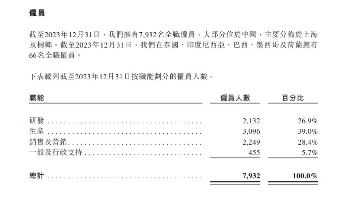 不過,招股說明書也透露出一絲隱憂。截至2023年12月31日,哪吒汽車在海外的員工數(shù)量?jī)H為66人,在7932名全職員工中所占比例并不高。