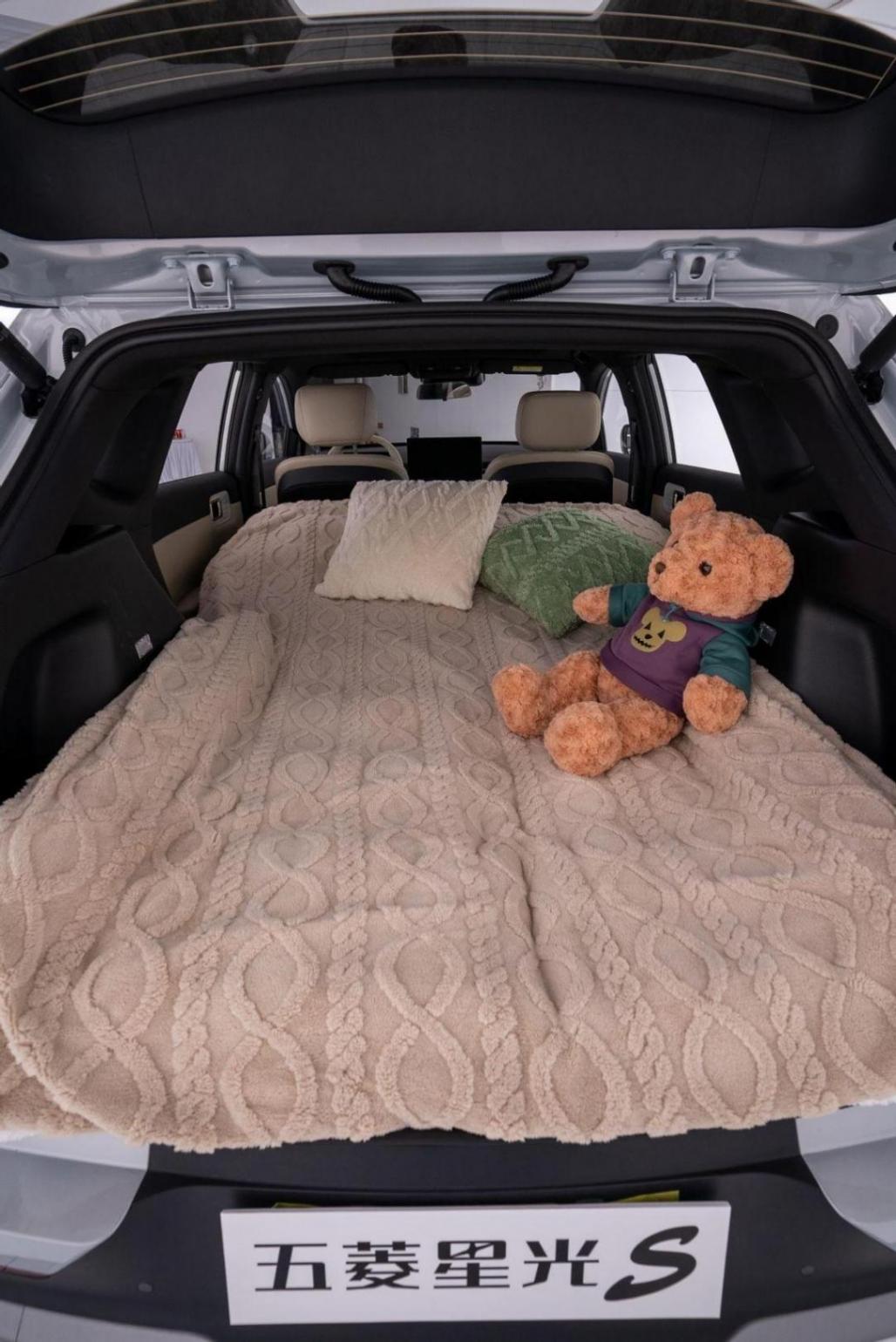 此外,在露營的時候,可以將第二排的座椅向前放倒,這樣的話后側就可以變成一張床,晚上直接在車上睡覺就行。如果節假日出行,在景區找不到酒店的話,五菱星光S可以應急用。此外,當副駕駛以及后側的座椅都放倒之后,就成為了一個人的專屬,這讓我想到了現在很多的旅行博主都采用床車出行,那么五菱星光S有這么靈活的座椅不就是一個合格的床車嗎?