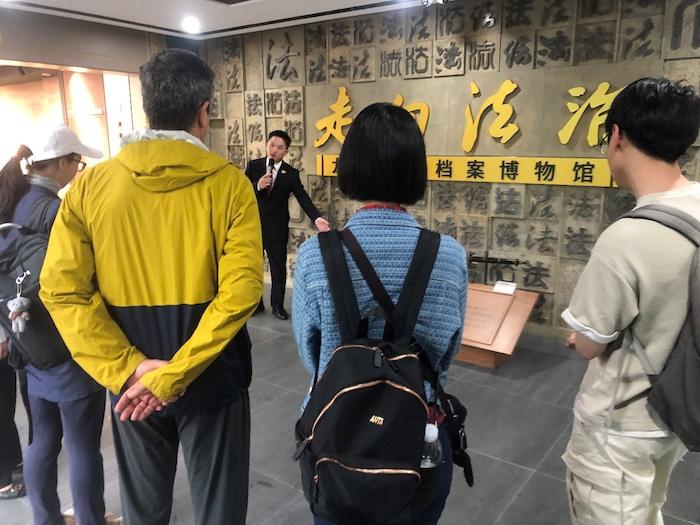 4月30日上午,宋教授一行來到龍泉司法檔案博物館。博物館位于龍泉市人民法院,主要介紹與展覽晚清民國的龍泉司法檔案。宋教授依序參觀了館內的展覽,對其中未能詳細說明其概念的使用詞如花廳等提出了疑問,并建議進一步改進。宋教授系首次來館,對其中展出的司法檔案內容以及分析的案例十分感興趣,特別是涉及婚姻,親屬關系等與家庭、宗族等相關的案件介紹,因而拍攝了諸多照片素材以備日后在哈佛大學授課時使用。