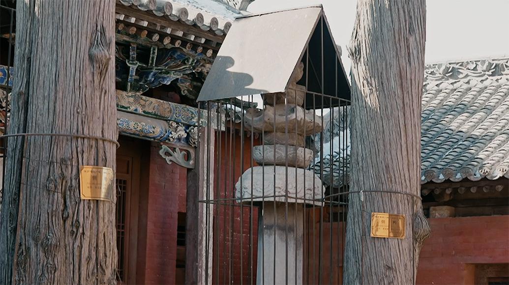 兩棵超過300歲的古柏蔭蔽中庭,古柏下方是寺中年代最久遠的兩座石刻經幢,鐫刻于后周廣順三年(953年),做工繁復精細,保存完好,分別刻有佛頂尊勝陀羅尼經和佛說阿彌陀經。在親身進入之前,很難想象這樣一座處處細節震撼人心的千年古寺外圍,是村民們晾曬的一堆堆玉米棒子。初見張晚才,就在玉米棒子堆旁的嘉祥寺大門。