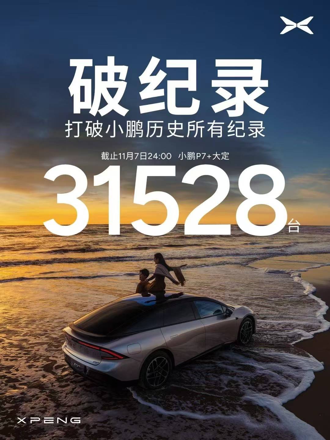 小鵬P7+在11月7日21點左右才正式上市,截止11月7日24:00,其便交出了一份31528輛新車的大定銷量數(shù)據(jù)成績單。