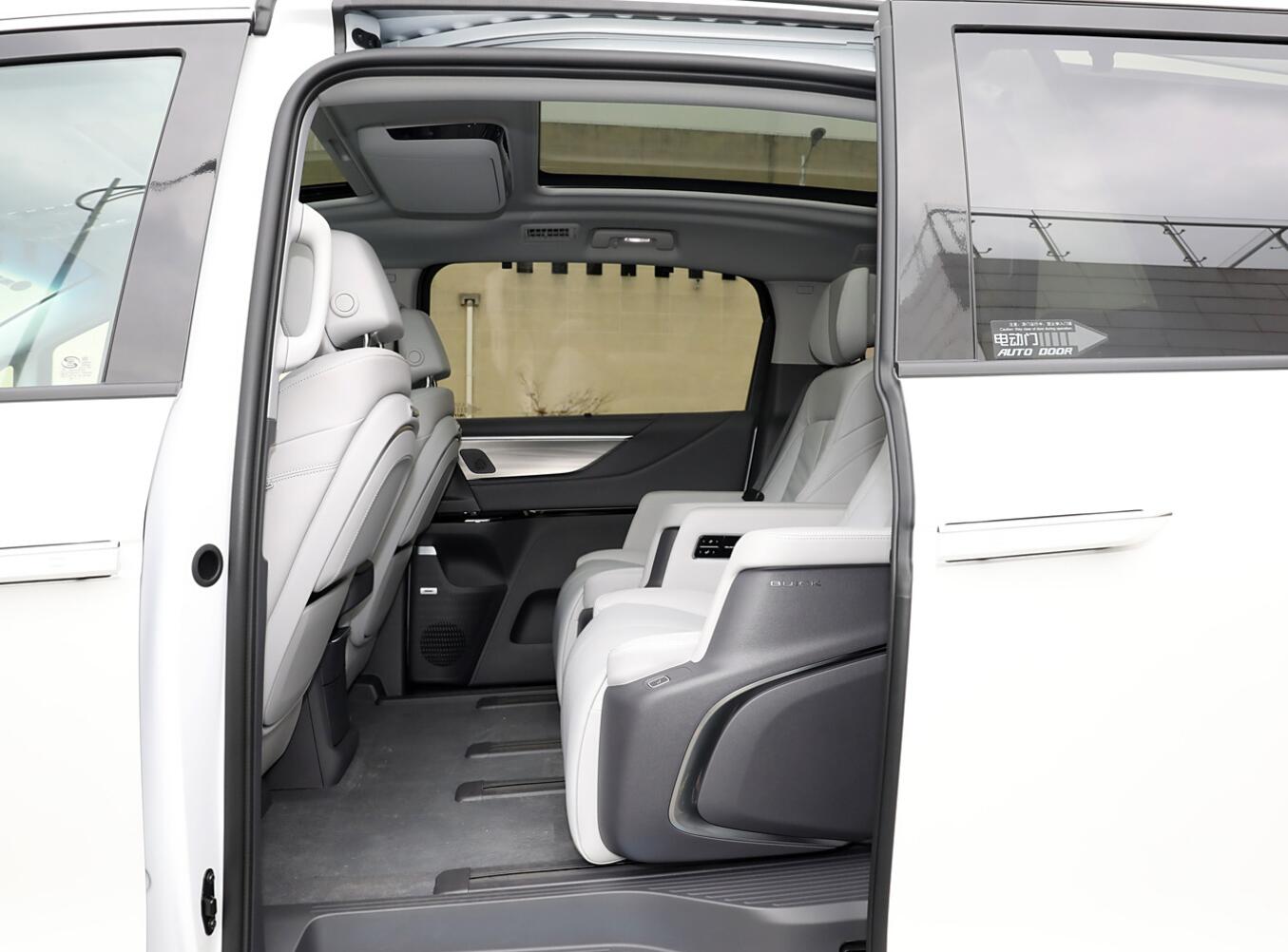 從空間上看,新車長寬高分別為5219/1878/1807mm,軸距為3088mm,定位5門6座MPV。同時,車內座椅布局、座椅設計以及靠背附帶的小桌板等細節元素,均沿用了GL8 PHEV的經典設計;特別是第二排航空座椅,其標志性的加厚肩部設計依然醒目,搭配Nappa真皮材質。此外,新車在第二排和第三排的車窗位置,都增設了遮陽簾。