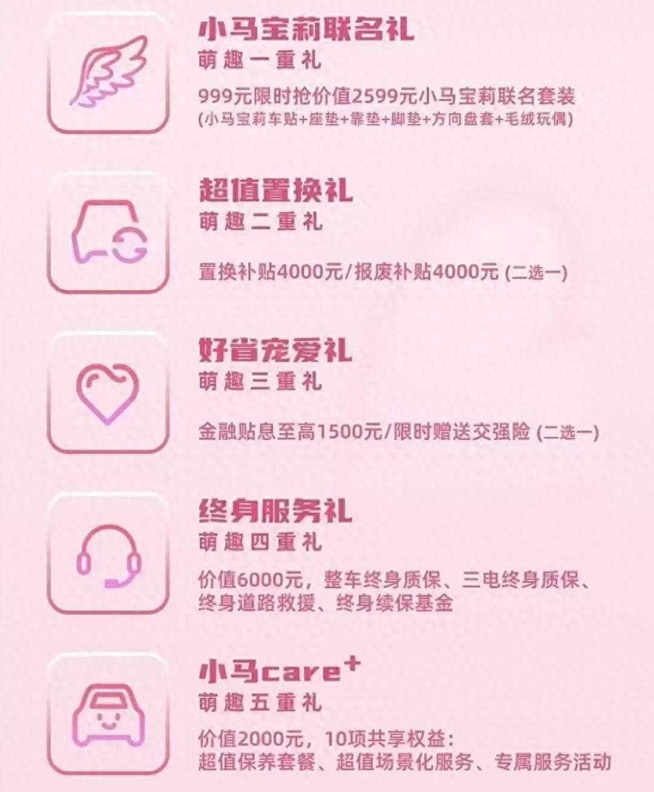 從車型上看,新車一共推出兩款車型,價格分別為3.69萬和3.99萬元,都是222公里續航版本。政策方面,包括4000元的置換或者報廢補貼,1500元金融優惠或者限時送交強險,999元抵2599元禮包,2000元超值權益,以及終身整車質保、道路救援等服務。