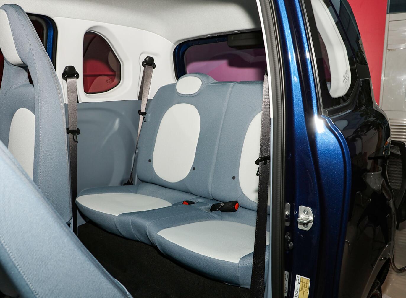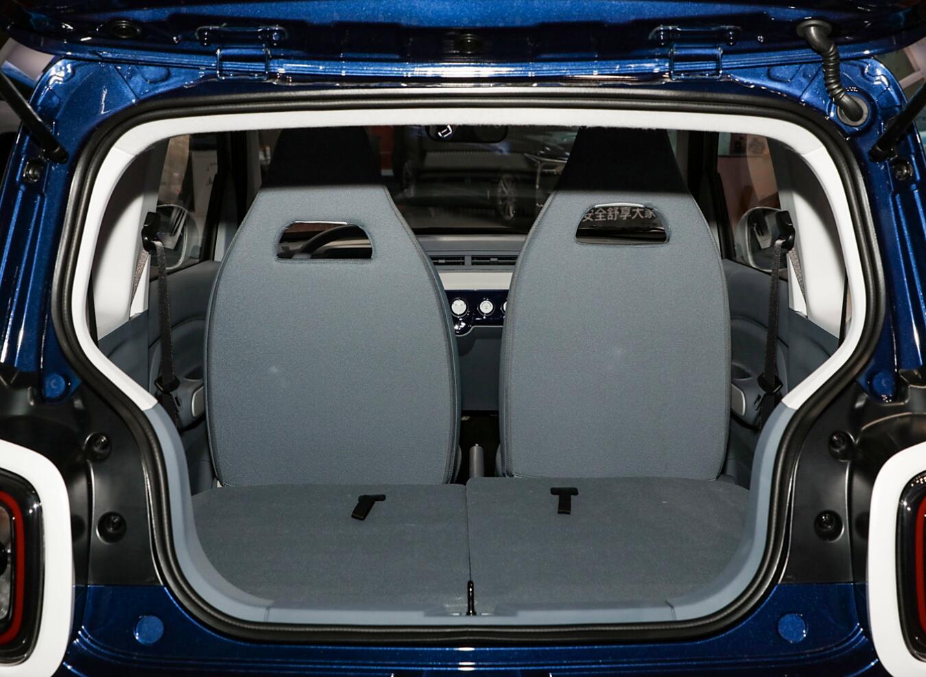 空間方面:新車長寬高分別為3000/1510/1630mm,軸距為1953mm,定位3門4座兩廂車。其中,滿載最小離地間隙為130mm,空載最小離地間隙為160mm,最小轉彎半徑為4.28米。一米七的身高,前后排頭部距離有一拳,后排腿部空間也有一拳。后備廂容積為81升,后排放倒之后可擴展至734升。