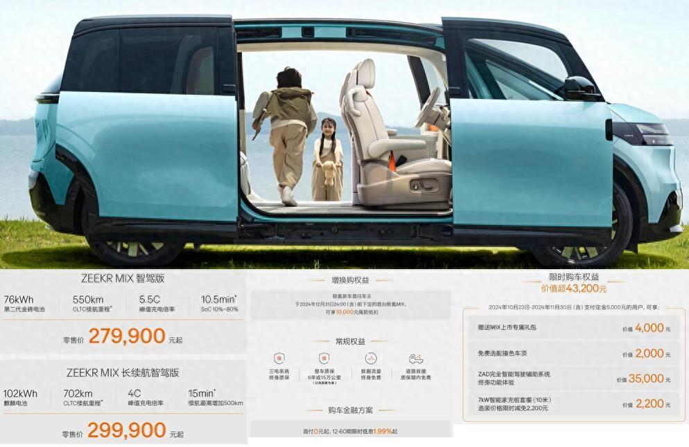 從車(chē)型上看,新車(chē)一共推出了兩款車(chē)型,分別是智駕版和長(zhǎng)續(xù)航智駕版,價(jià)格分別為27.99萬(wàn)和29.99萬(wàn)元。值得一提的是,福利很豐富,例如43200元限時(shí)購(gòu)車(chē)權(quán)益,10000元的增換購(gòu)權(quán)益,0首付低息政策。