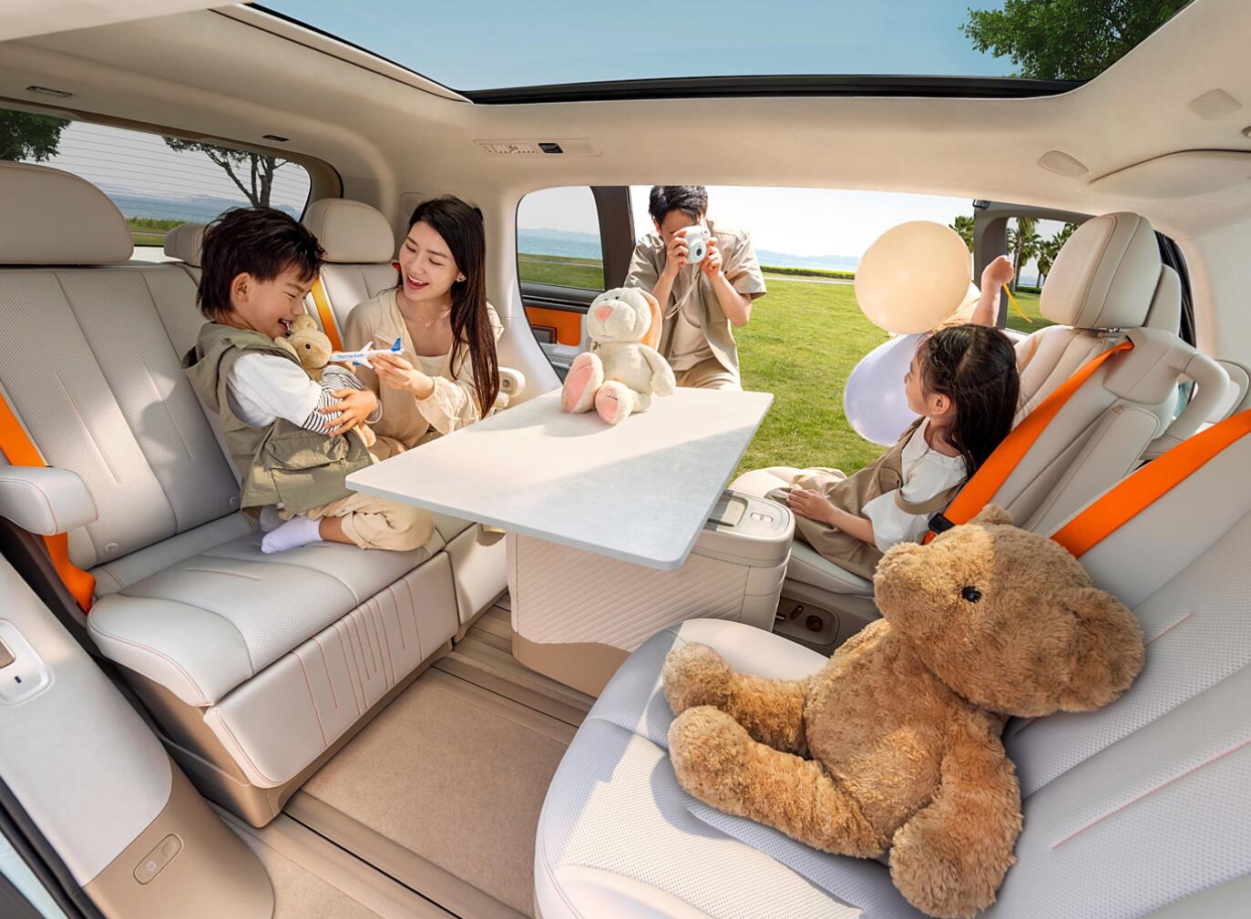 從外觀上看,新車(chē)有10種配色可選,在設(shè)計(jì)上延續(xù)了極氪品牌最新的“Hidden Energy”設(shè)計(jì)語(yǔ)言。車(chē)頭大燈組與黑色飾條融合一體,配備95英寸Stargate一體式智慧燈幕,可自定義燈語(yǔ)顯示內(nèi)容。側(cè)面采用了貫通式電動(dòng)對(duì)開(kāi)門(mén),駕駛員一側(cè)采用前平開(kāi)門(mén)+后外擺式滑動(dòng)門(mén)、副駕一側(cè)前后均為外擺式滑動(dòng)門(mén)。尾部同樣是貫穿尾燈,并配有大面積后窗和擾流板。