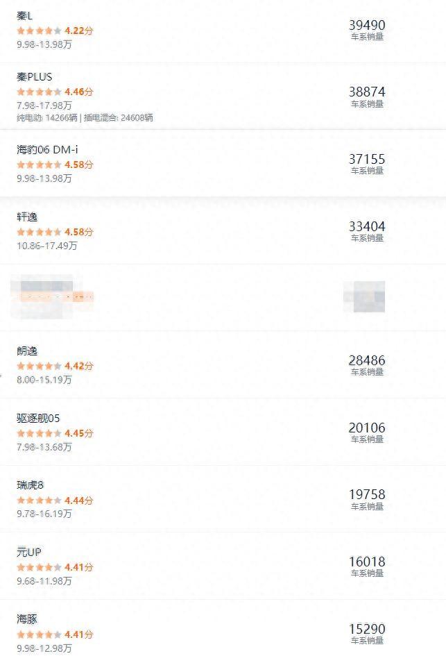 從價格上看,符合條件的最熱門車型有秦L、秦PLUS、海豹06 DM-i、軒逸、朗逸、驅逐艦05、瑞虎8、元UP、海豚。同時,這些車型9月銷都在1.5萬以上。