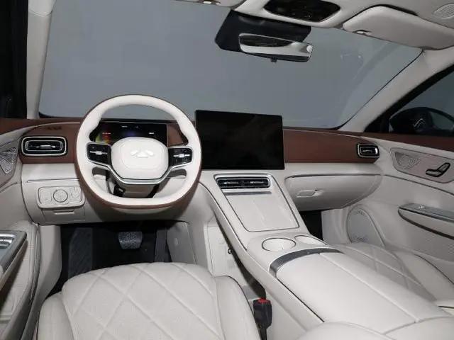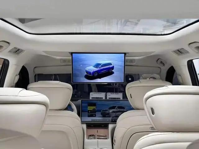 內部方面,新車采用雙屏造型,除棕色,米色豪華內飾配色外,還配備無線充電、人臉識別、電子換擋撥桿等功能。從座椅布局來看,座椅有2+3的5座和2+2的4座配置,其中4座版匹配兩個獨立行政大沙發,座椅有加熱、通風、按摩、腿部支撐等功能。此外,搭載高階智駕系統,雖未配備激光雷達,但純粹視覺設計也很吸睛。