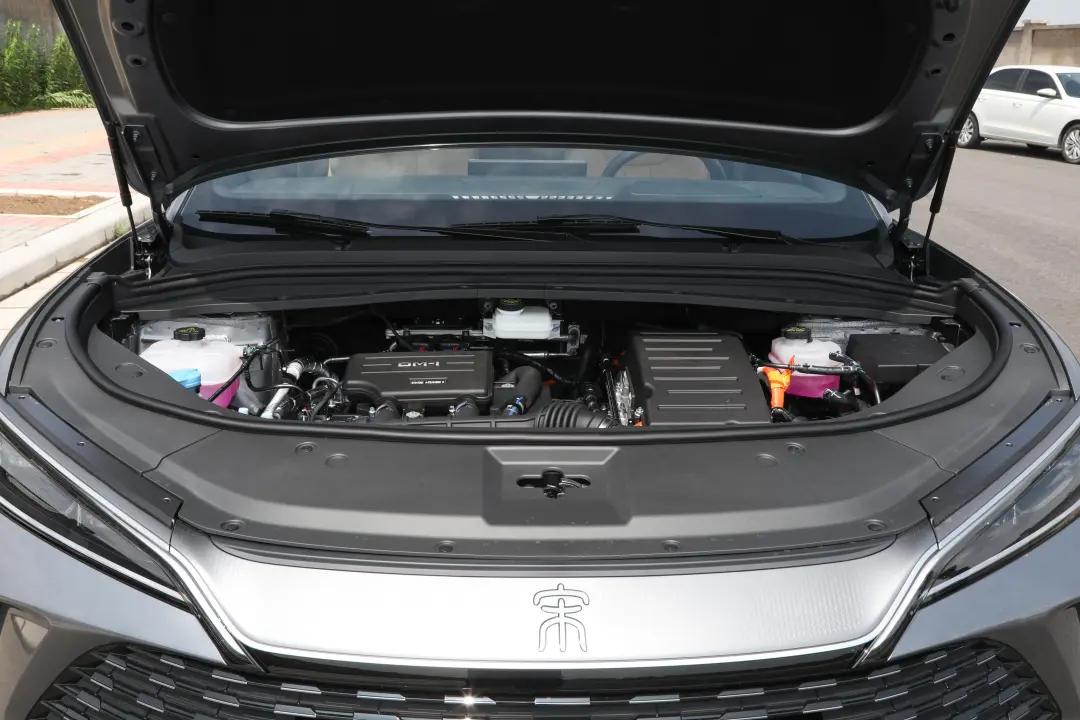 在動力部分,宋L DM-i搭載了比亞迪最新的第五代DM混動系統。這臺配置了1.5L自吸發動機和前置電機的動力系統,不僅加速迅猛(0-100km/h僅需7.7秒),而且在虧電狀態下的油耗僅為3.88L/100km,展現出良好的經濟性。
