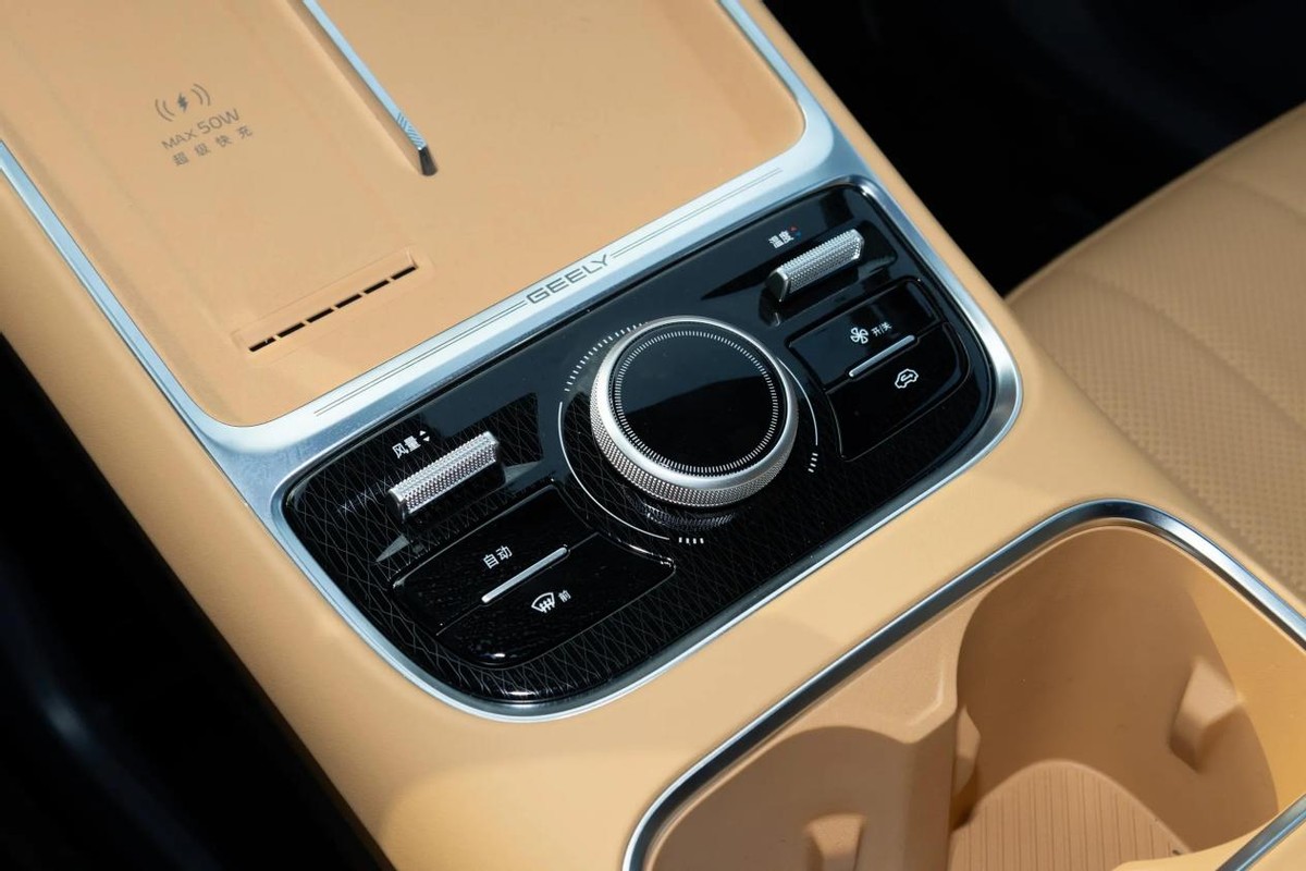 視線來到車內(nèi),銀河星艦7 EM-i座艙不缺精致氛圍,一是雙拼色內(nèi)飾、大量軟包面料和金屬飾條點(diǎn)綴,帶來了不錯(cuò)的內(nèi)飾質(zhì)感。同時(shí),銀河星艦7 EM-i座艙主打極簡(jiǎn)設(shè)計(jì),僅保留了少量實(shí)體按鍵,空調(diào)出風(fēng)口同樣也用巧妙的設(shè)計(jì),讓其沒有違和感。