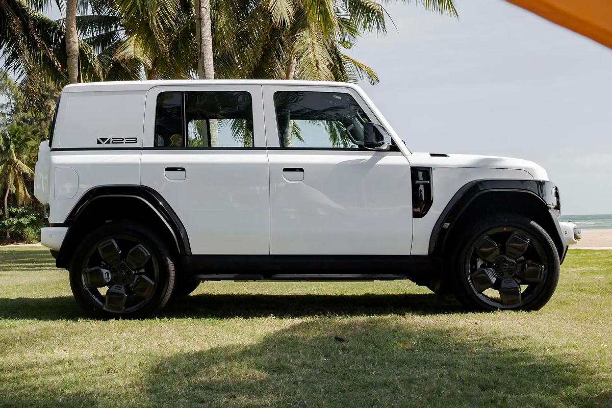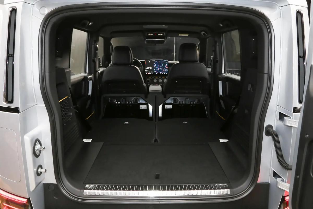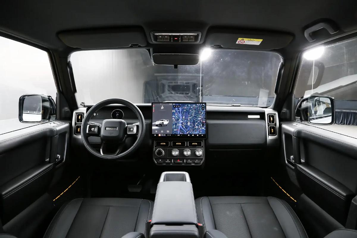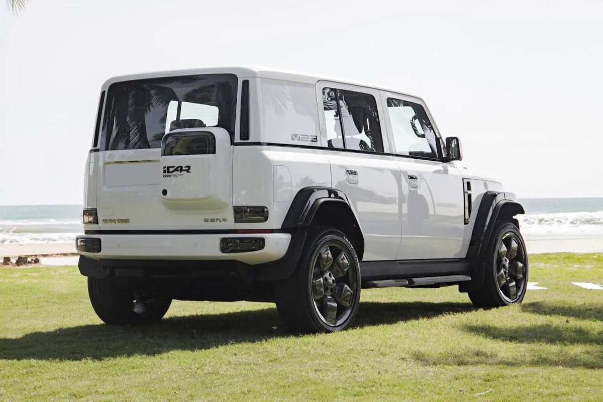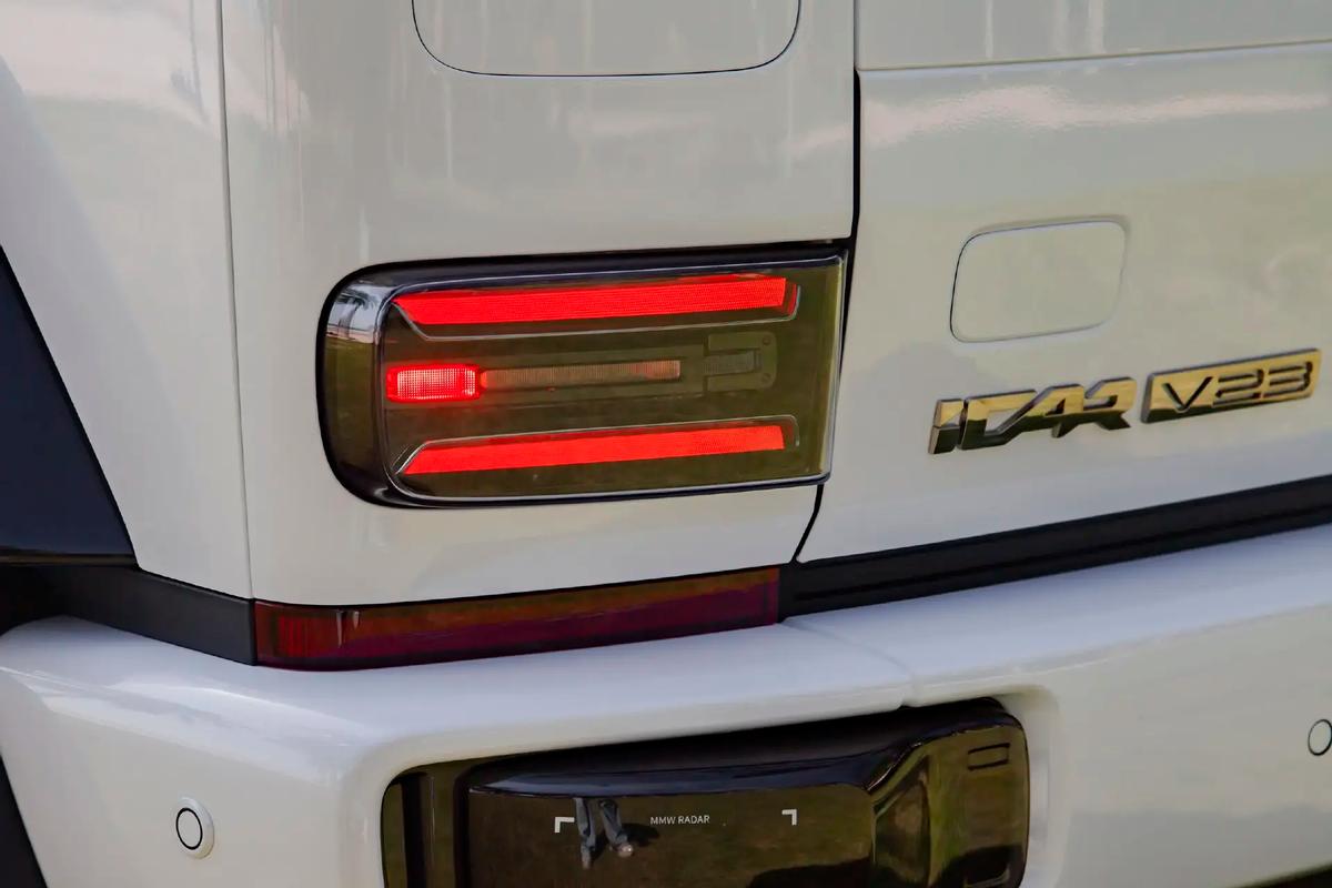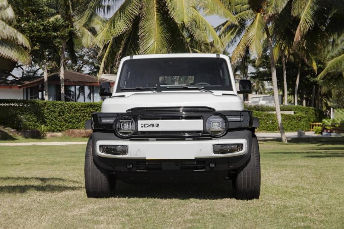 iCAR V23擁有越野車經典的方盒子造型,但從風格上來說,它雖然沒有奔馳G級的邊框那么鋒利、也沒有后者那么寬大,但依舊會介于路虎攬勝與奔馳大G之間。特別是在使用圓形復古大燈,并提供了多功能行李架、前保險杠防撞欄、運動側裙與踏腳板等配件的情況下,iCAR V23的“野性”是肉眼可見的。