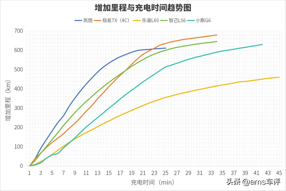 據悉,此次測試中,媒體在保持車輛同一狀態下,使用同一充電樁進行單車充電測試。嵐圖知音最早完成充電,用時24分58秒;其次,極氪7X和智己LS6幾乎同時完成補能,用時分別為33分58秒和33分59秒;然后是小鵬G6,用時41分33秒;最后是樂道L60,用時44分53秒。
