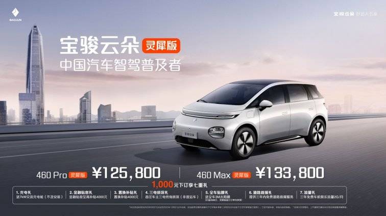 2023年8月10日,云朵迎來上市,售價為9.58萬元-12.38萬元。寶駿希望用“多加一點料”的方式與對手錯位競爭,意圖搶占以比亞迪海豚為首的A0級市場份額。