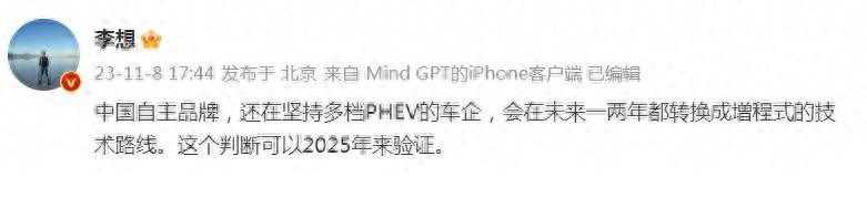 在2023年的時候,理想汽車創始人李想在社交媒體上表示,未來一兩年時間里,很多堅持多擋插混的自主品牌可能都會轉向增程,這一個結論可以放到2025年進行驗證。當時這話一出,遭到了很多車企技術人員和高管的抨擊,但是從如今的情況來看,似乎不用等到2025年了,因為現在增程式電動車的銷量已經“完爆”多擋插混了,還在堅持多擋插混的自主品牌,代價就是銷量上不去。