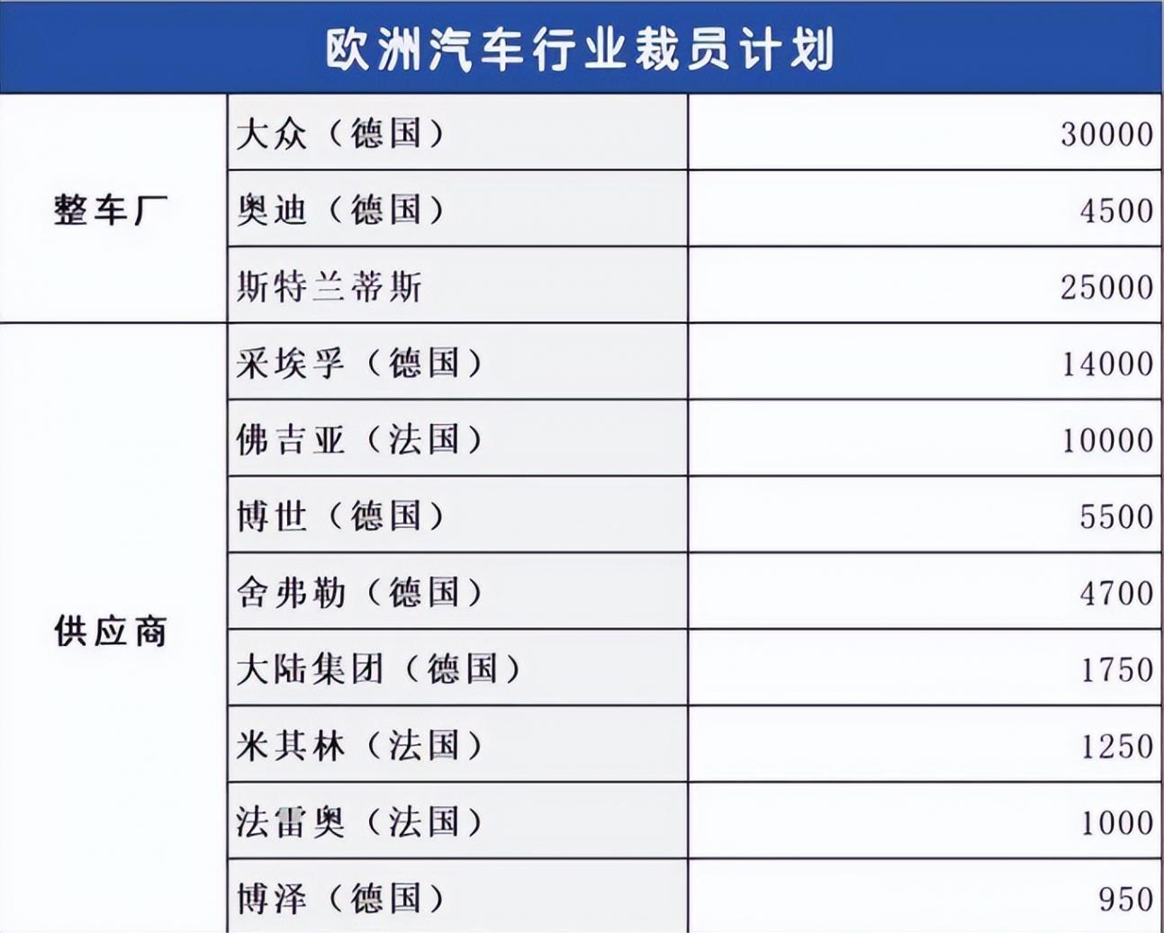 2024年的歐洲汽車產業,誰的日子都不好過,大眾、奧迪、博世、大陸。。。。。。各路老牌車廠和供應鏈的裁員浪潮一波接著一波,有媒體粗略估算,不大的歐羅巴,如今怎么也得有超過10萬人被裁。