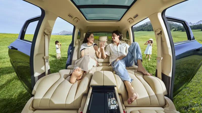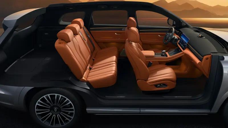 提供 5 座和 6 座布局。5 座版車內(nèi)有效空間達(dá) 3338mm,二排空間最大 1220mm,后備廂最大拓展至 1618L,還有沙灘椅模式。6 座版優(yōu)化第三排,腳面降低、縱向及頭部坐高空間提升,且有零重力座椅。全系標(biāo)配二排座椅電動調(diào)節(jié)、通風(fēng)加熱按摩與魔力磁吸,方便家庭出行與帶娃。