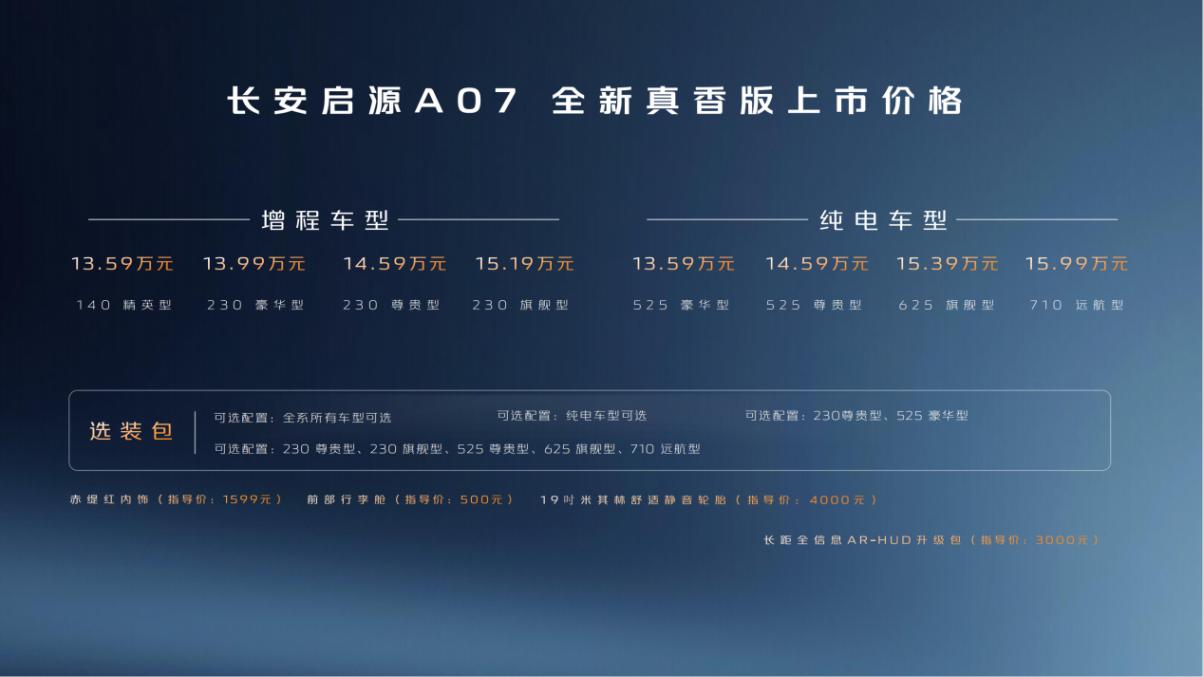 在續航方面,長安啟源A07全新真香版展現出了同級領先的超長續航實力。其純電車型憑借710公里的遠航能力,蟬聯了同級純電續航最長的桂冠,成為15萬元級唯一續航超過700公里的純電車型。而特別加推的625公里純電車型,更是進一步完善了長安啟源的純電長續航組合,使得A07成為同級唯一全域覆蓋500、600、700公里續航的純電轎車。這樣的續航表現,無疑為用戶提供了更多的選擇和便利。