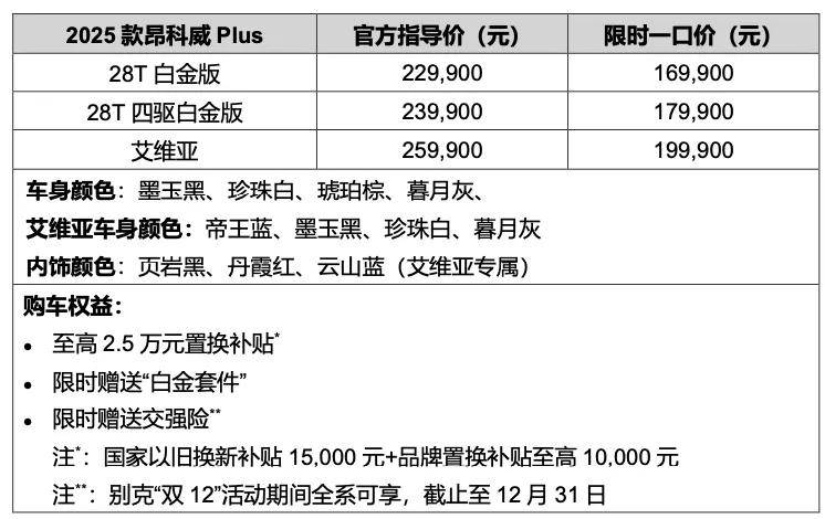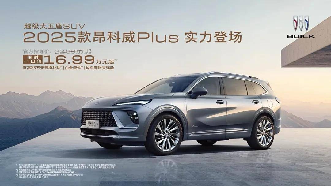 在11月份的時候,昂科威Plus推出了限時一口價政策。雖然說是限時政策,但到了12月,2025款昂科威Plus正式上市,依舊推出限時一口價16.99萬起,限時一口價區間為16.99-19.99萬元,并且還贈送交強險,相當于又省了1000元左右。