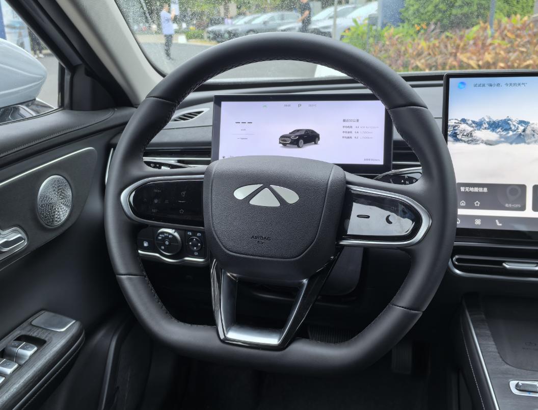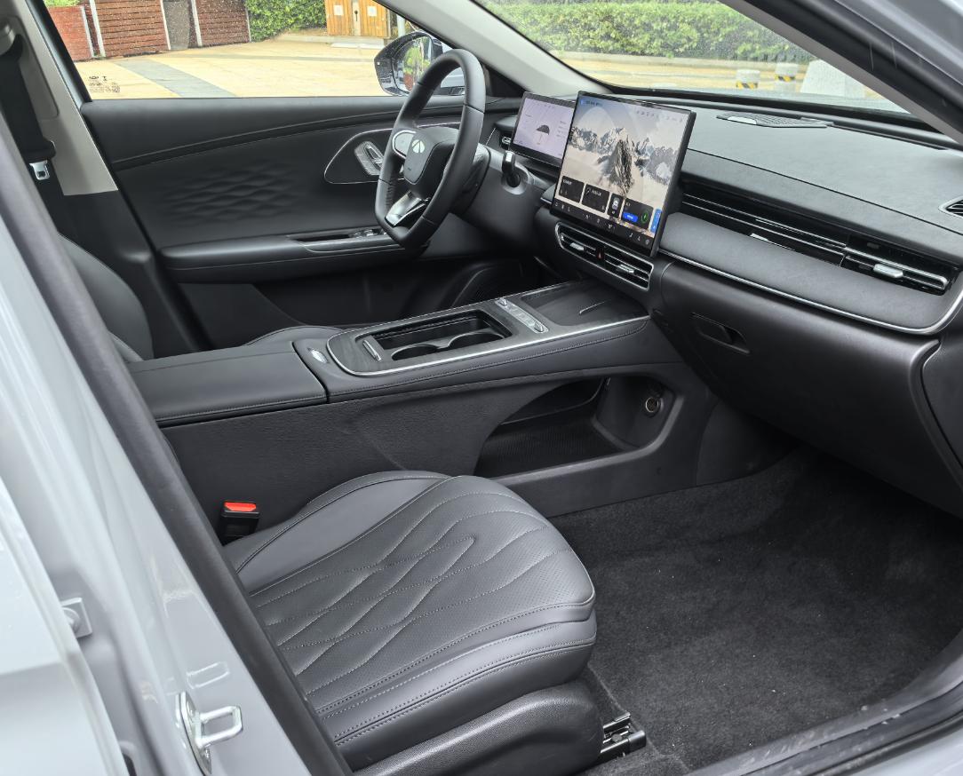 車內(nèi)的一體式雙聯(lián)屏被一塊15.6英寸的2.5K懸浮式中控屏和矩形全液晶儀表盤所取代,緊跟現(xiàn)代汽車設(shè)計的潮流。
