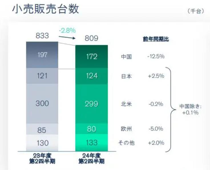 另外,如果不計在中國市場銷量下滑12.5%,那么日產(chǎn)汽車在全球其他區(qū)域的總銷量還處于增長狀態(tài)(0.1%)。