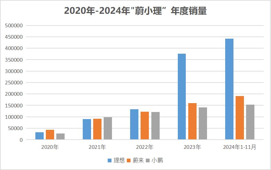 十年生死兩茫茫,淘汰賽進入加速模式。當年“蔚小理”三俠客惺惺相惜,如今排序已變化。理想2023年已經實現盈利,2024年1-11月累計銷量達44萬輛。小鵬1-11月累計銷量超15萬臺,下半年勢頭強勁,11月單月銷量破3萬;MONA M03連續兩月交付破萬,P7+上市后訂單情況也不錯。