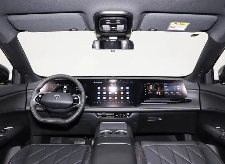 再來便是新車的內飾,新車的內飾布局主打了前衛科技的設計風格。37寸一體懸浮式三聯屏,支持HUAWEI HiCar、Carlink、T-Link三種手機車機互聯模式等智能配置,結合多功能方向盤,可為用戶帶來更好的人車交互體驗。