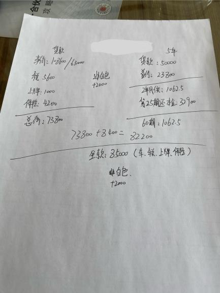綜上,單車總價加上2年后馬上結清所有貸款的利息,即最低實際買車價位:8.22萬元,即該店實際最低落地成交價。