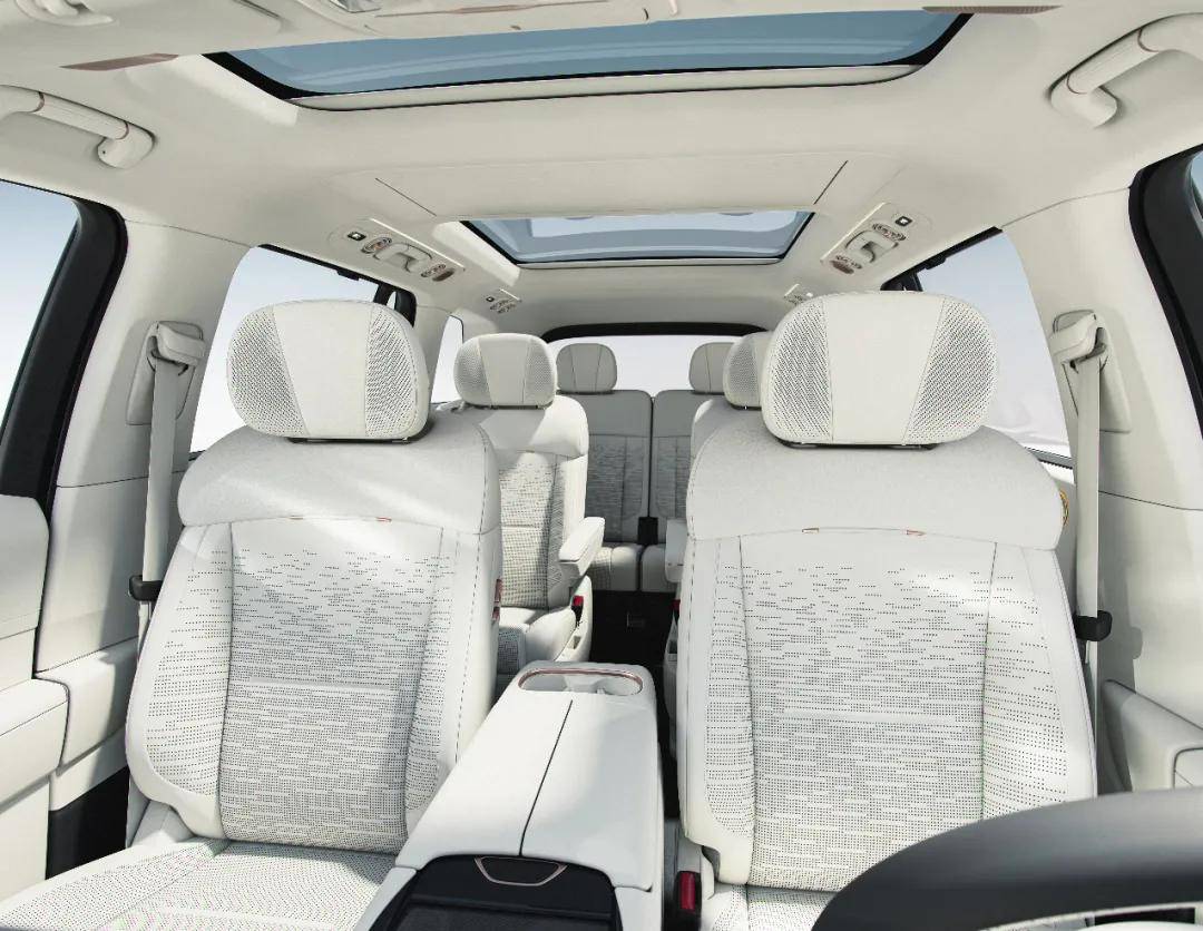 據官方介紹,在保證安全結構和前引擎艙空間的前提下,SPA Evo架構賦能產品創造更大的空間帶寬,可實現同級最高得房率88%以上,及同級最高1293mm以上的車內空間高度,實現全員旗艦級空間享受。后排純平地板,滿足身高1.3米的兒童直立行走;二排座椅采用550mm超長滑軌,放倒座椅更可變身“超級大床房”,三排增加了125mm的滑動空間,還支持最大155度的大角度后仰,實現三排空間平權。