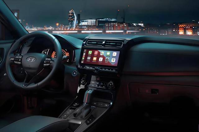 車身采用了小型SUV車型常用的車身輪廓,黑色的車頂、黑色的A柱、加寬加厚的黑色B柱、黑色的C柱與全車黑色隱私玻璃融為一體,與湛藍色的車身形成了鮮明的對比,營造出懸浮式的立體效果。造型立體的腰線配合著黑色的輪眉和側裙,并將配備17英寸低風阻輪圈,增添了更多的硬派氣息。車身尺寸方面,全新的現代Creta長度為4315mm,寬度為1790mm,高度為1630mm,軸距為2610mm。這使得它成為現代汽車公司B-SUV產品中最大的產品,位于Venue、Bayon和之上。車內采用了傳統的5座布局,配備了5個織物沙發座椅,還帶有8個揚聲器的BOSE高級音響系統、前排座椅通風,空氣凈化系統,環境照明,前后排USB端口,以及無線充電板,配置更加豐富。