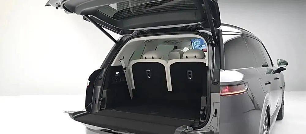 空間上,領克900車內面積6.16m²,得房率88.2%,二排座椅具有長滑軌,可以實現前后550mm的移動范圍,三排同樣擁有椅背調節和前后調節,前后可實現125mm的移動范圍。整車內部提供42處儲物空間,后備箱空間可拓展,三排有人乘坐的情況下,后備箱容積最大可達300L,深度最深可達590mm、寬度1130mm、高度786mm,后備廂下方隱藏儲物空間容積20L。此外,車頂上方行李架采用隱藏懸浮式設計,最大承重300kg(靜態),動態行駛時可承重100kg。