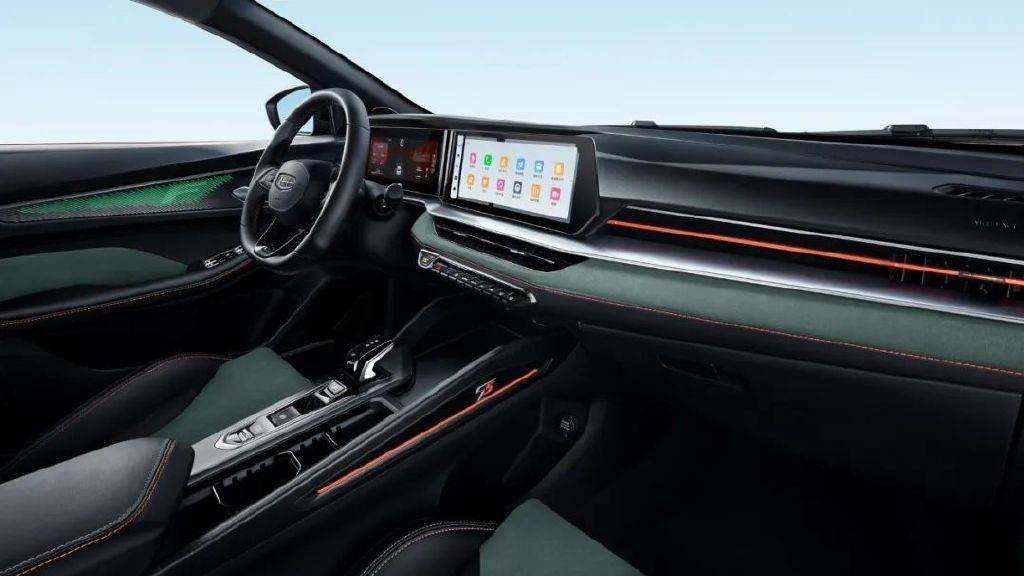 內(nèi)飾方面,吉利繽瑞COOL配備了由10.25英寸液晶儀表、12.3英寸中控屏組成的懸浮式雙聯(lián)屏,搭載E02新一代高性能數(shù)字座艙平臺,支持智能AI語音交互、三指飛屏、高德智慧導(dǎo)航、540度全景影像等一系列實用功能。電子換擋桿造型個性,不僅具備智能管理擋位邏輯,其手柄還自帶了燈光功能,點(diǎn)亮后非常酷炫。除此之外,還擁有類麂皮雙拼內(nèi)飾、類麂皮環(huán)抱式競技座椅、72色流光氛圍燈等一系列高價值配置,整體的視覺觀感非常上檔次,可帶來越級的視覺沖擊力。