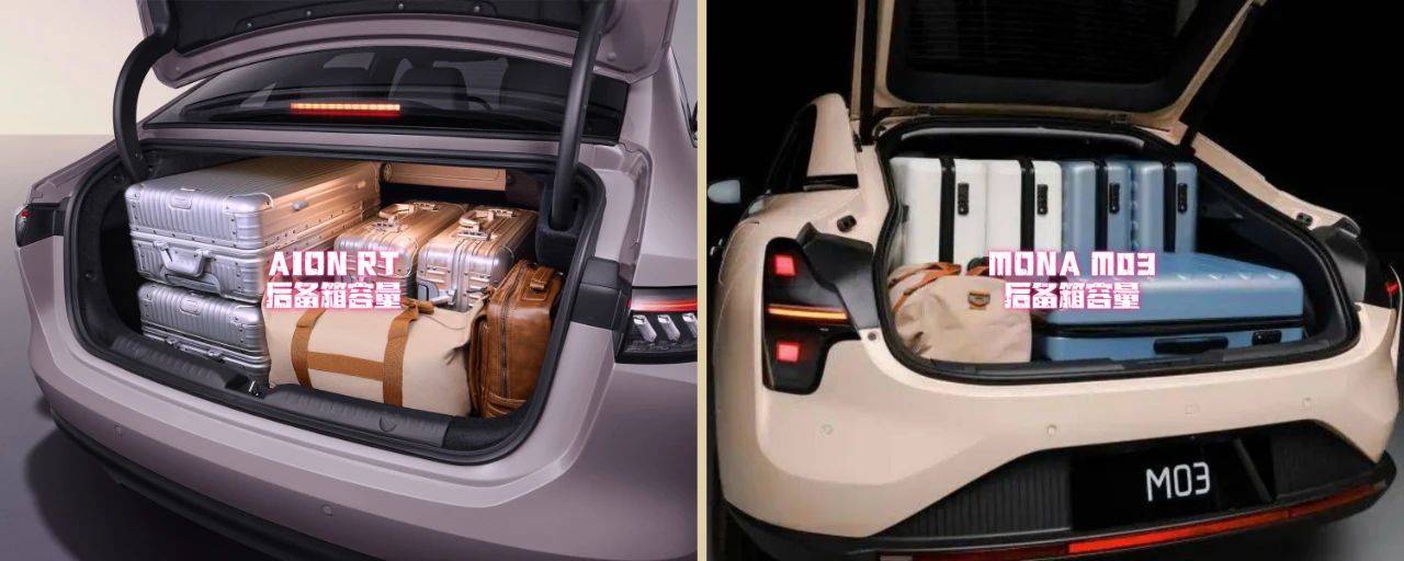 不僅如此,哪怕你是家庭用戶,也會發(fā)現(xiàn),AION RT 650智享版比小鵬MONA M03還少了電動尾門、倒車預警、自動泊車、NFC鑰匙、自適應遠近光燈、天窗、多功能外后視鏡、四區(qū)域語音控制、高通驍龍8155芯片、16+128G內存,手機快充+無線快充、車內氛圍燈,就連后備箱空間都小了將近80升。