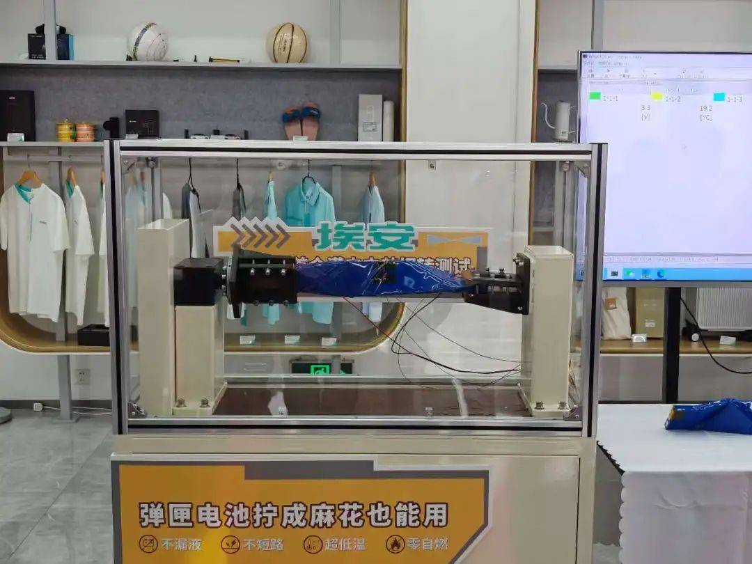 關于三電部分的電池,在車型講解環節,特別提到了AION UT電池的安全性。采用彈匣電池2.0技術,現場還演示了最嚴苛的“麻花式”扭轉測試,經過180度的扭轉,電池做到了不升溫不短路,這也是AION UT的賣點之一。
