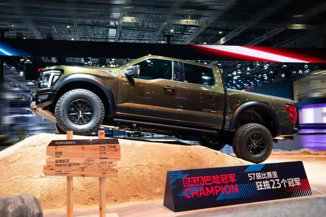 如果說烈馬復(fù)古特別版是向歷史致敬的浪漫詩篇,那么展臺(tái)另一側(cè)的新款F-150猛禽,則是一曲寫給荒漠與速度的硬核戰(zhàn)歌。從復(fù)古到現(xiàn)代,福特用截然不同的產(chǎn)品語言,詮釋了“野性基因”的多元表達(dá)。