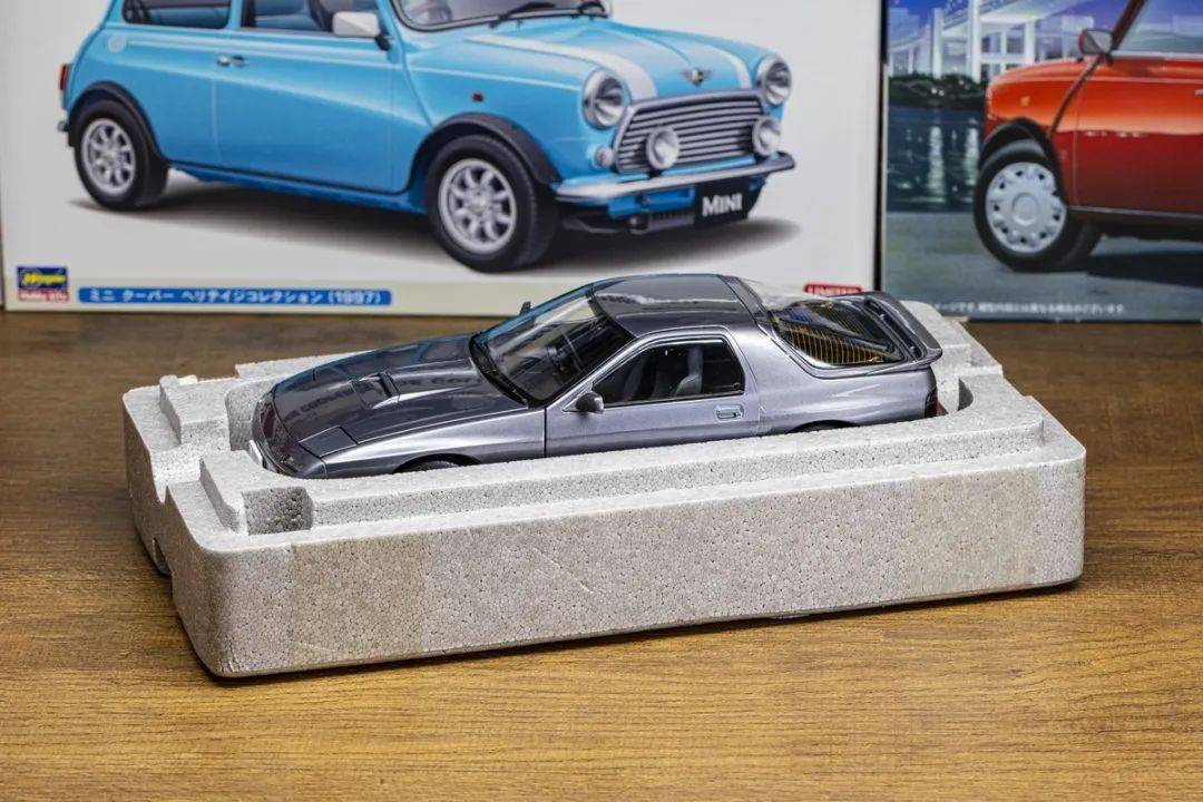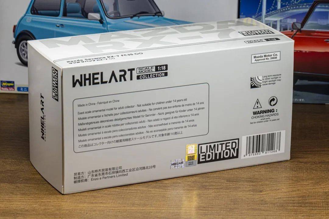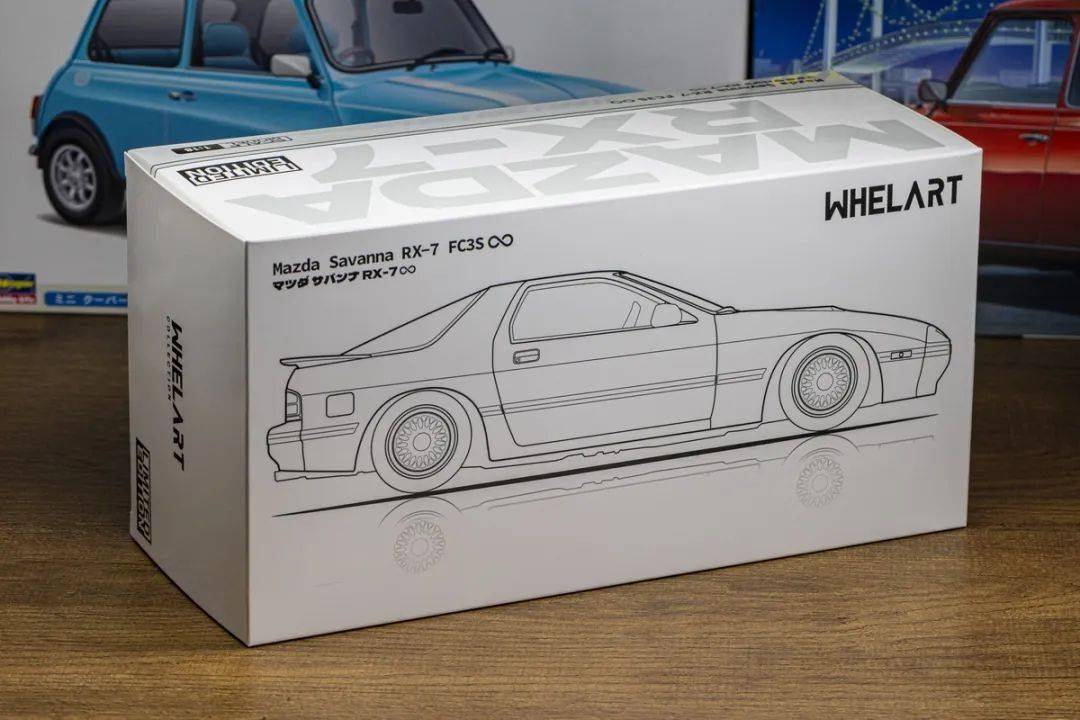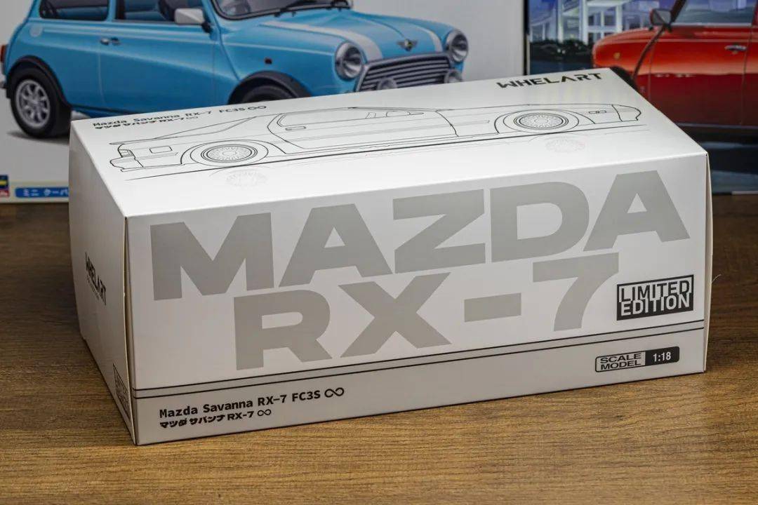 WHELART的包裝采用白色的紙盒,有馬自達(dá)RX-7 FC的線條圖,盒子尺寸偏小,沒有像SUPRA一樣附送發(fā)動機(jī);WHELART的這款馬自達(dá)RX-7 FC還配一個(gè)吸盤開門器和限量卡片,不過附件不算太多。