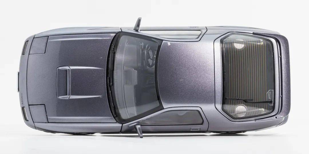 WHELART的這款馬自達(dá)RX-7 FC采用灰色金屬漆面,金屬顆粒也非常均勻,漆面整體表現(xiàn)都還算穩(wěn)定,縫隙也控制得比較好;模型的前后雨刮都是塑料獨(dú)立件,都做得比較精致,前擋風(fēng)玻璃前側(cè)還有浮雕的格柵網(wǎng),前蓋上還有雨刮噴嘴細(xì)節(jié)和進(jìn)氣口設(shè)計(jì),后擋風(fēng)有加熱絲細(xì)節(jié)。