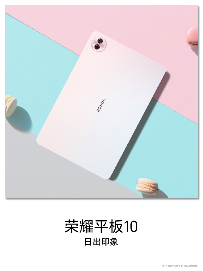5 月 16 日消息,榮耀平板 10 即將上市,官方今日公布新品的三款配色 —— 日出印象、天青色、蒼山灰,新品采用星光云環設計、全金屬一體機身。