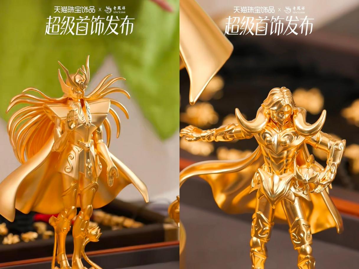 除了中式審美和古法技藝的融合運(yùn)用,老鳳祥在黃金賽道上也在探索另一條路—— IP聯(lián)名。近日,在社交平臺(tái)掀起一陣回憶殺的“黃金圣斗士”,就是老鳳祥在IP聯(lián)名上的新嘗試。網(wǎng)友表示,童年的“含金量”不斷上升。