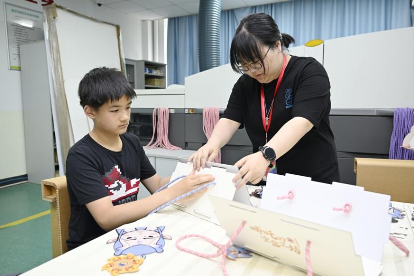 我的風火輪上要有哪吒和敖丙的打斗場景,他們的形象應該是成年后的帥氣模樣……”這個周末,在上海新聞出版職業技術學校職業體驗日現場,幾位小學生興奮地討論如何通過大模型軟件設計出喜歡的風火輪圖案。他們還根據自己設計的產品打印出配件,動手拼接組成創意寶盒。