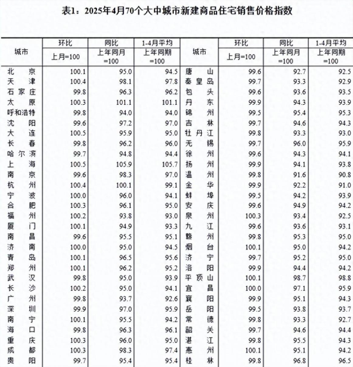 5月19日,國家統計局公布2025年4月份70個大中城市商品住宅銷售價格變動情況。