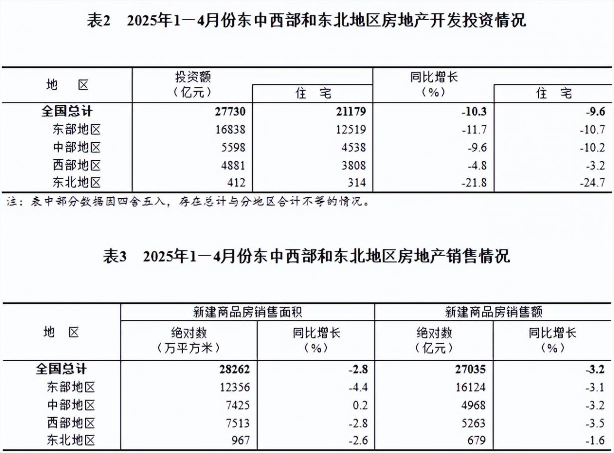 同日,國家統計局發布2025年1~4月份全國房地產市場基本情況。
