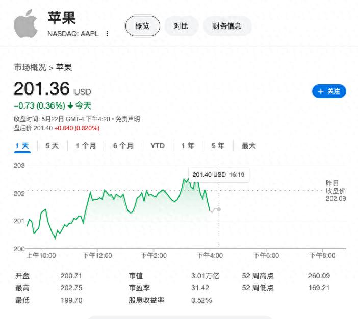 消息傳出后,蘋果股價周四下午曾短暫上漲,但最終收跌0.36%,報201.36美元。今年截至周三收盤,蘋果股價已累計(jì)下跌19%。