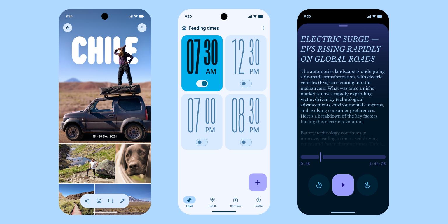 還記得之前 Android 的配色總是溫柔內(nèi)斂,怎么看都像是極簡風?現(xiàn)在,谷歌終于不裝了——給你整了一盤炫彩大拼盤!