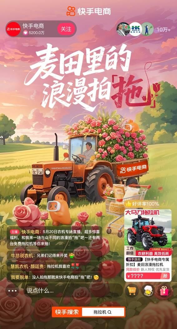 在520這個被符號化的日子里,快手電商平臺精準(zhǔn)捕捉到三農(nóng)用戶被忽視的消費(fèi)痛點(diǎn):當(dāng)春耕撞上購物節(jié),他們更需要的是能提升畝產(chǎn)的智慧農(nóng)機(jī)具,而非被營銷話術(shù)包裝的儀式感商品。于是當(dāng)520大家都在搶購美妝禮盒、爆款服飾時,快手電商卻選擇做小眾品類的擺渡人——這次我們不賣風(fēng)花雪月,只賣土地的“生產(chǎn)力浪漫”,以農(nóng)機(jī)為媒,在田間地頭開展一場特別活動,共赴一場麥田里的浪漫拍“拖”。