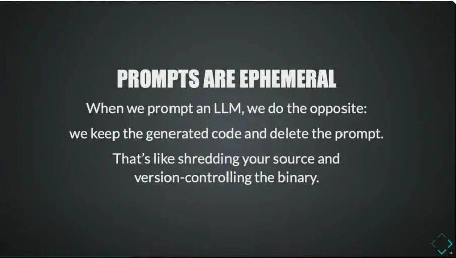 扔掉 prompt 只保留代碼,就像扔掉源代碼只保留二進制文件一樣;